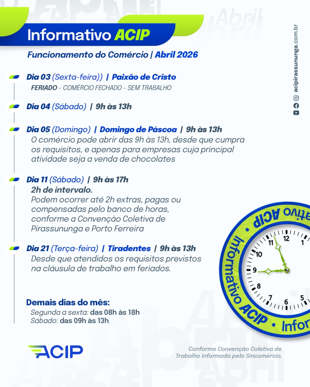 INFORMATIVO FUNCIONAMENTO COMÉRCIO / ABRIL/26