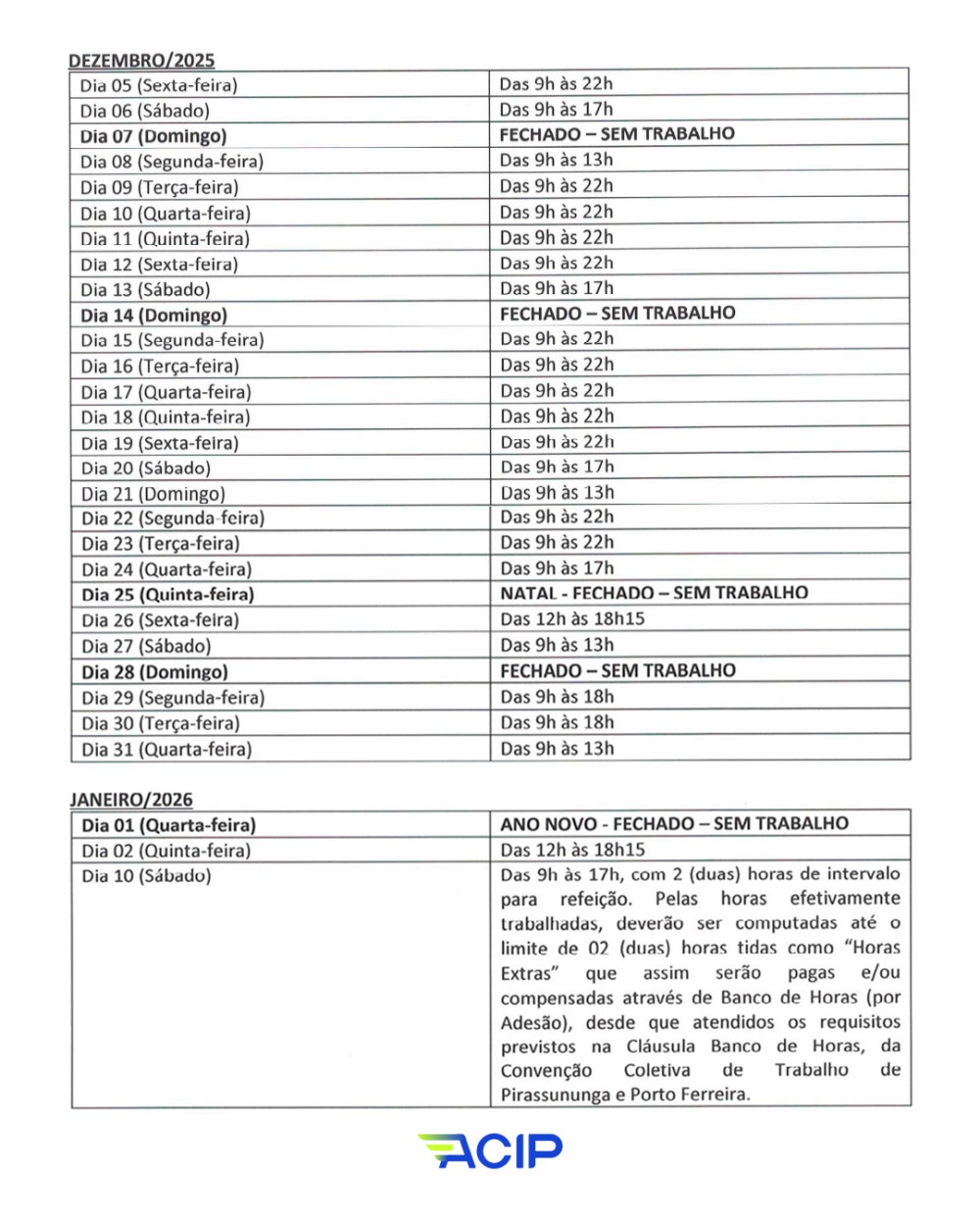 INFORMATIVO FUNCIONAMENTO COMÉRCIO / DEZEMBRO/25