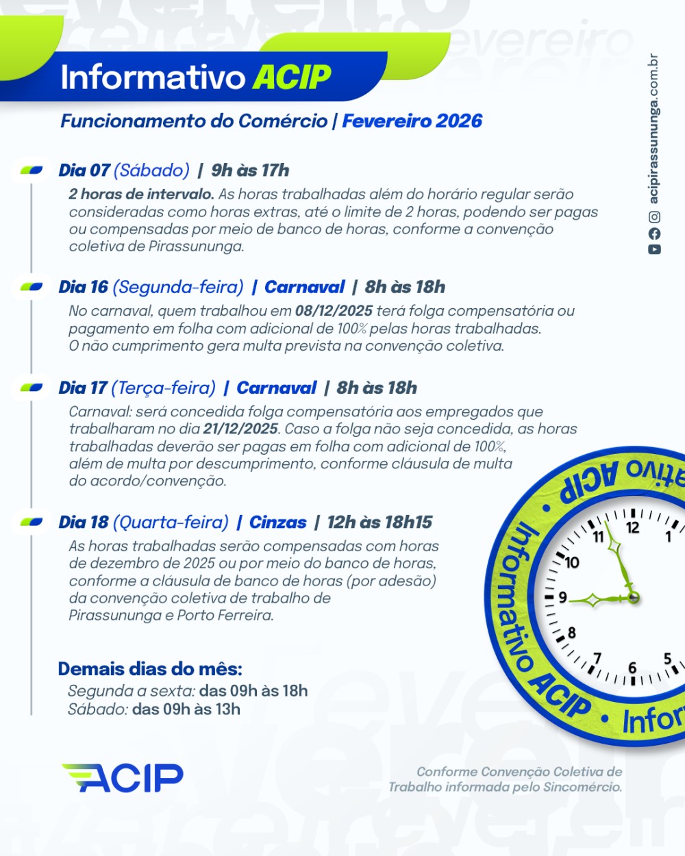INFORMATIVO FUNCIONAMENTO COMÉRCIO / FEVEREIRO/26